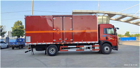 外板采用免漆鋼板一次性沖壓成型的百葉窗,內(nèi)飾為導電性能良好的合金板有透氣孔,內(nèi)襯為矩形管骨架牢靠穩(wěn)定,骨架內(nèi)部填充為透氣防潮阻燃材料。廂體外部四周鋁合金型材包邊,底板和車廂前下部鋪橡膠皮,后門雙開,右側(cè)選裝側(cè)開門,內(nèi)部安裝固定貨物的臥環(huán),安裝煙霧報警器、防盜感應(yīng)器。車身附件靜電接地帶、滅火器、防火罩、危險品三角燈、橙色反光帶、反光板、菱形標志牌、危險品牌、安全告示,拖地靜電帶。