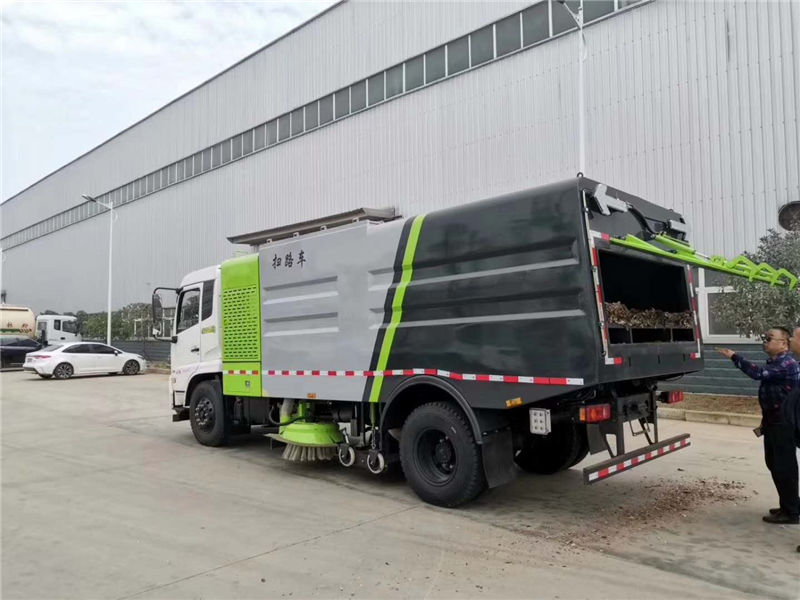 1. 采用吸掃混合的方式收集垃圾,濕式除塵、電液控制,液壓傾翻卸料的作業(yè)方式對(duì)路面進(jìn)行清掃作業(yè)。