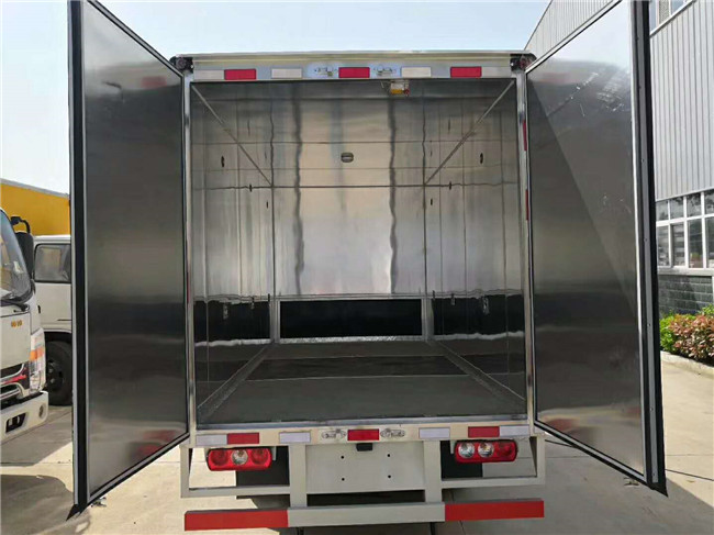 躍進國五易燃氣體廂式運輸車裝制作標準,車廂外板采用1.2mm厚冷軋鋼板,帶一次沖壓成型的百葉窗,內(nèi)飾為導靜電性能良好的鋁板,并開有透氣孔,中間為牢靠穩(wěn)定的矩形管骨架,內(nèi)部填充透氣防潮阻燃的擠塑板,經(jīng)現(xiàn)在工藝復合而成。廂體內(nèi)帶捆綁臥環(huán)或固定貨物的防撞護板,該車配有車載氣體感應報警器,防盜報警器,前置防撞靜電膠皮,滅火器,防火罩,整車國標危險品警示燈,危險標示。
